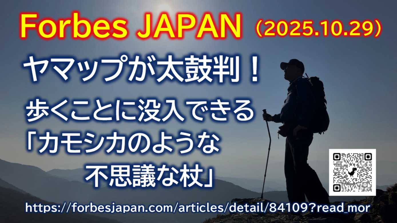 【Forbes JAPAN】ヤマップも太鼓判!歩くことに没入できる「カモシカのような不思議な杖」https://forbesjapan.com/articles/detail/84109?read_mor